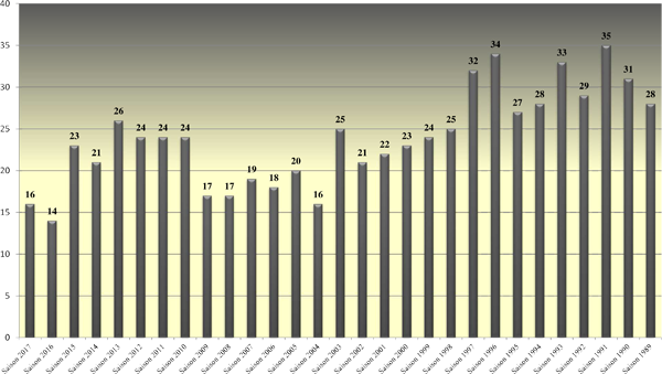 | 2017 | 16 | 702 | 0 | 2 | 9 | 0 | 0 | 0 | 2 |